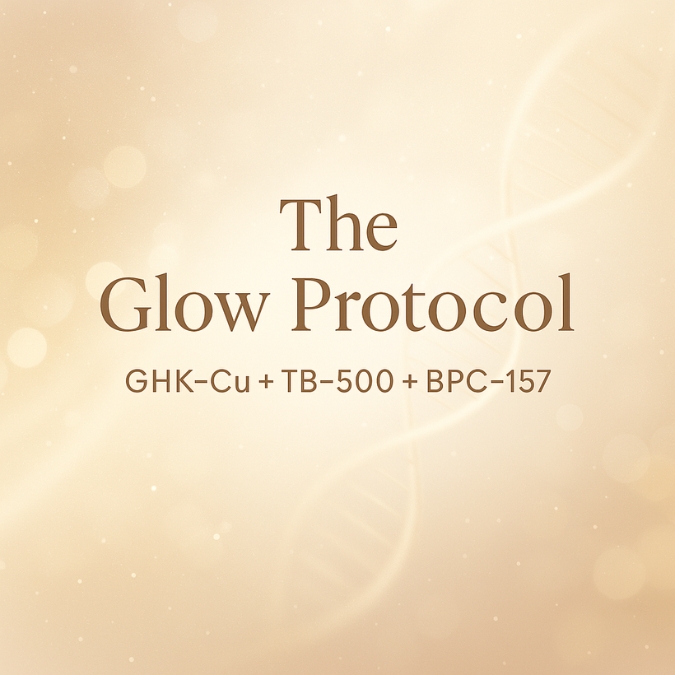 The Glow Protocol is a research framework exploring three complementary peptide families — GHK-Cu, TB-500, and BPC-157 — within studies on cellular renewal, extracellular-matrix dynamics, and biological resilience. It examines three domains: Structure (collagen/ECM signaling), Traffic (cell migration & micro-circulation), and Protection (oxidative/inflammatory balance).