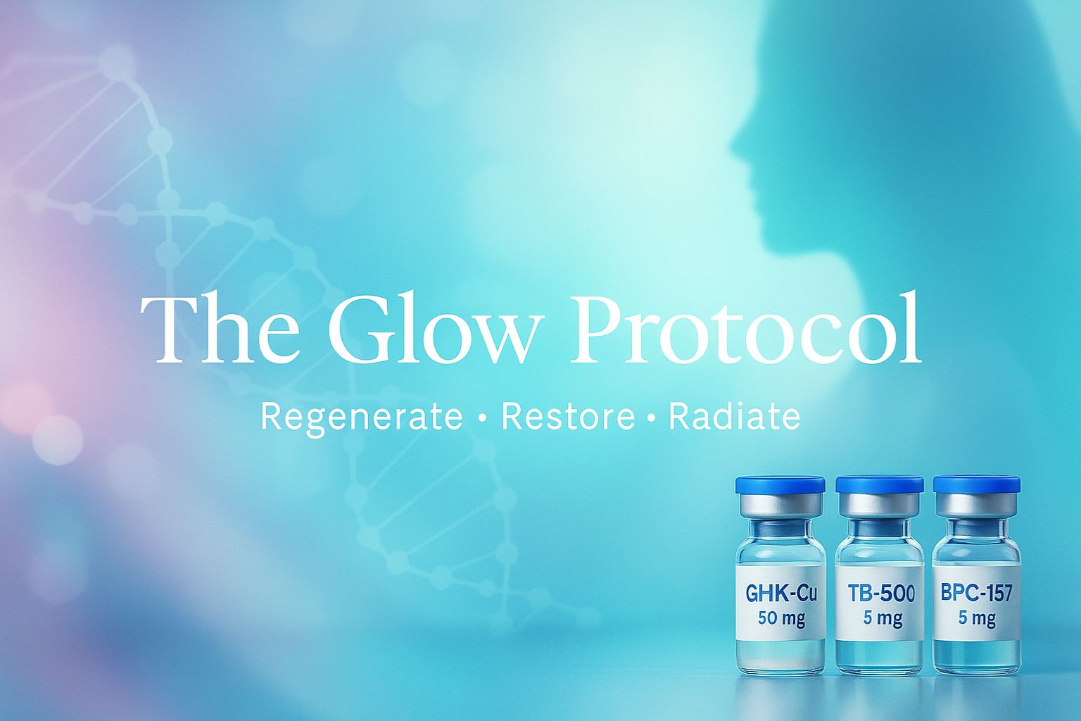 The Glow Protocol is a research framework exploring three complementary peptide families — GHK-Cu, TB-500, and BPC-157 — within studies on cellular renewal, extracellular-matrix dynamics, and biological resilience. It examines three domains: Structure (collagen/ECM signaling), Traffic (cell migration & micro-circulation), and Protection (oxidative/inflammatory balance).